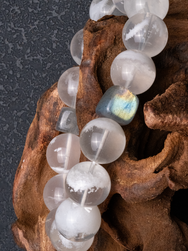Snowflake Phantom + Gray Moonstone BraceletShadow & Light. A striking combination of Gray Moonstone’s depth and Snowflake Phantom’s purity. Balance your emotions effectively.