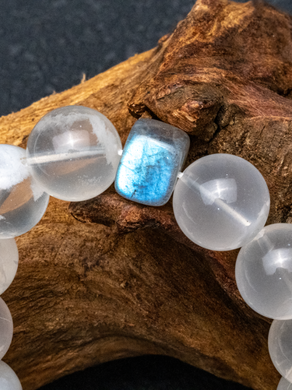 Blue Moonstone BraceletEthereal Blue Moonstone. Glowing with mysterious blue light, this gem enhances intuition and embraces divine feminine energy.