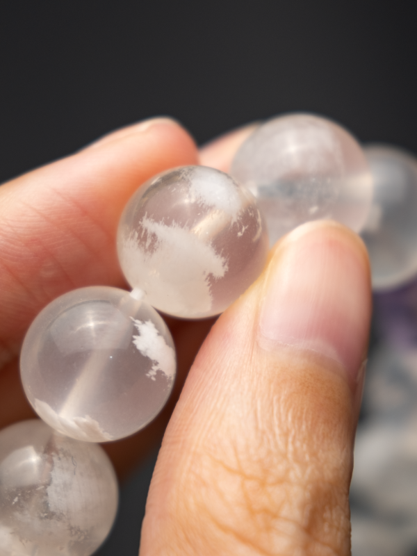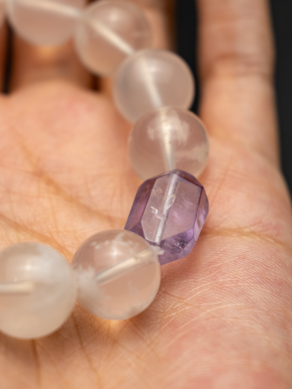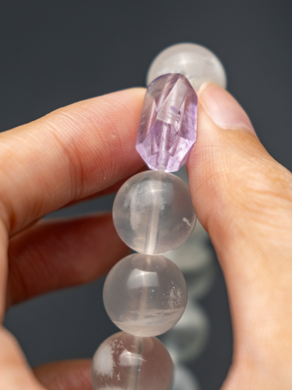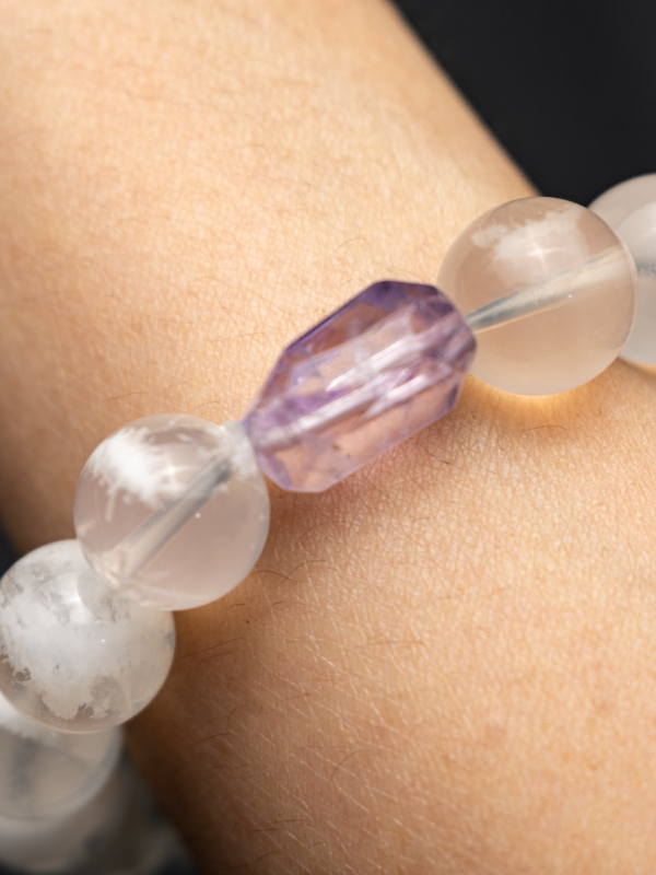 Amethyst + Snowflake Phantom (Wearing)Elegance on Wrist. Amethyst calms the mind while Snowflake Phantom clarifies thoughts. Perfect for a peaceful, focused day.